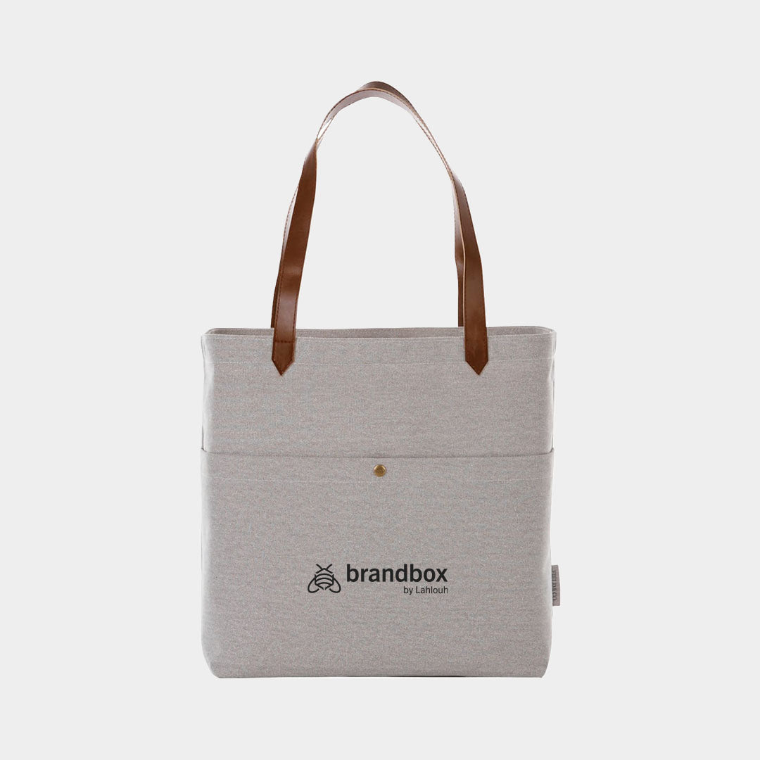 Open main compartment. Front pocket with snap closure. 12" drop vinyl handles. Durable 16 oz. cotton canvas. Disclaimer: Due to the dyes used & natural fabric, there will be slight color variations from the images shown. One color imprint in one location.